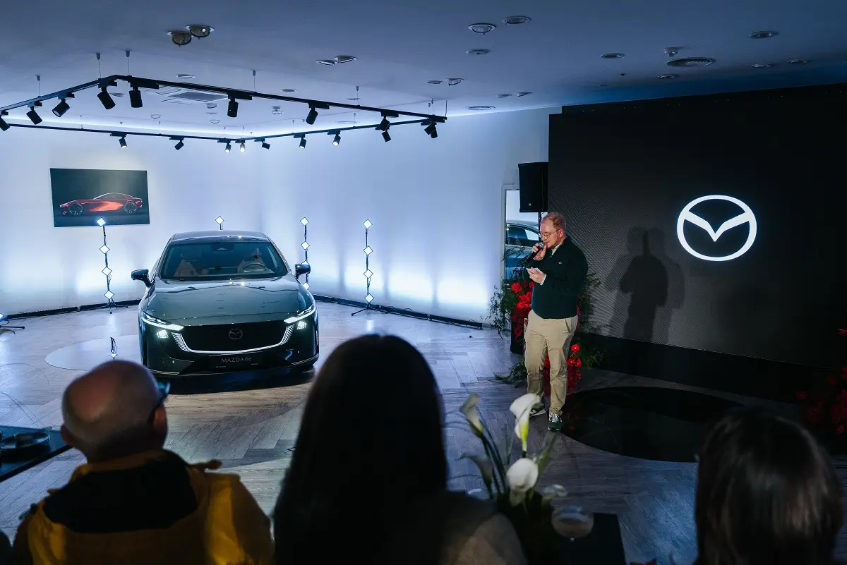 Mazda PR un Produktu vadītājs Konsta Kuusela jaunā Mazda modeļa Latvijas pirmizrādes laikā klātesošos iepazīstināja ar Mazda6e tehniskajiem un dizaina aspektiem, uzsverot, ka ”Mazda6e ir uzņēmuma jaunās vīzijas veiksmīgs izpildījums – dizains, meistarība un tehnoloģija apvienojas, lai radītu patiesi emocionālu pieredzi”.